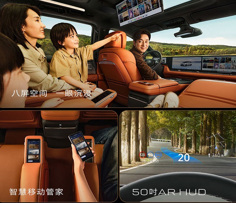 內(nèi)飾方面,新車采用10.25英寸儀表 16.3英寸中控屏 16.3英寸副駕娛樂屏組成的聯(lián)屏設(shè)計,后排還有吸頂屏。第二排提供獨(dú)立座椅,還搭配兩個觸控屏可調(diào)節(jié)座椅、空調(diào)、冰箱等。新車將搭載全新“逍遙智行”高階輔助駕駛,支持“無斷點(diǎn)”城市NOA領(lǐng)航、全車位泊車輔助等。