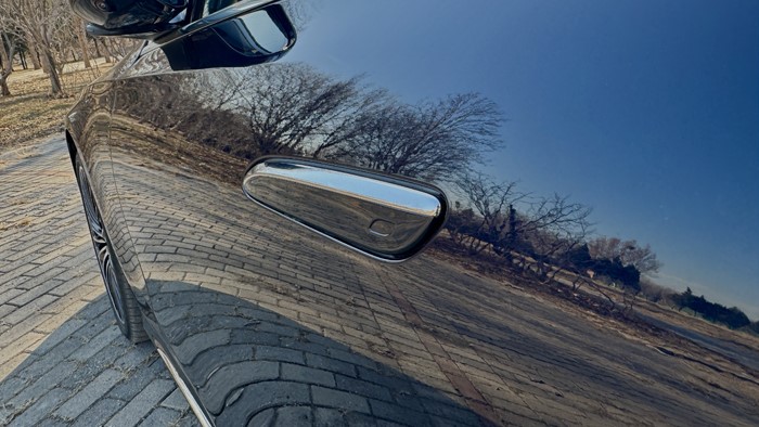 尾部方面,細長的貫穿式尾燈如今已是大部分奔馳轎車的共有特征,讓尾部的視覺效果更顯寬大、低矮;隱藏式門把手做工精致,伸縮時靜謐程度非常不錯。