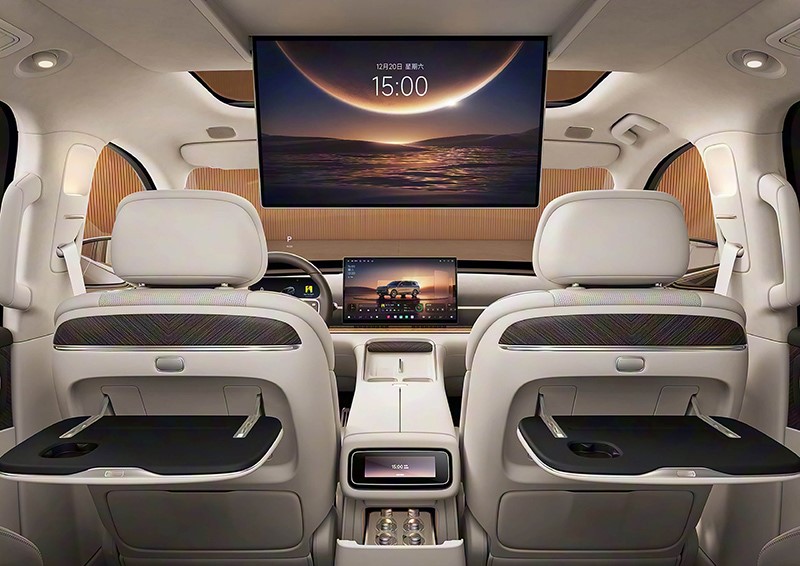 內(nèi)飾方面,新車采用10.25英寸液晶儀表搭配17.3英寸中控屏,并提供60英寸AR-HUD及二排零重力座椅。后排還提供21.4英寸吸頂屏及小桌板,提供五座、6座及七座等多種布局。新車將提供高通驍龍雙8797芯片,搭載VLA輔助駕駛系統(tǒng),支持車位到車位。