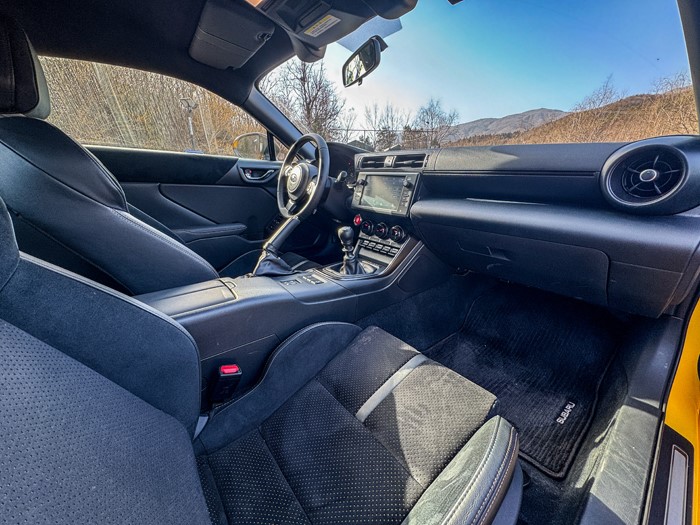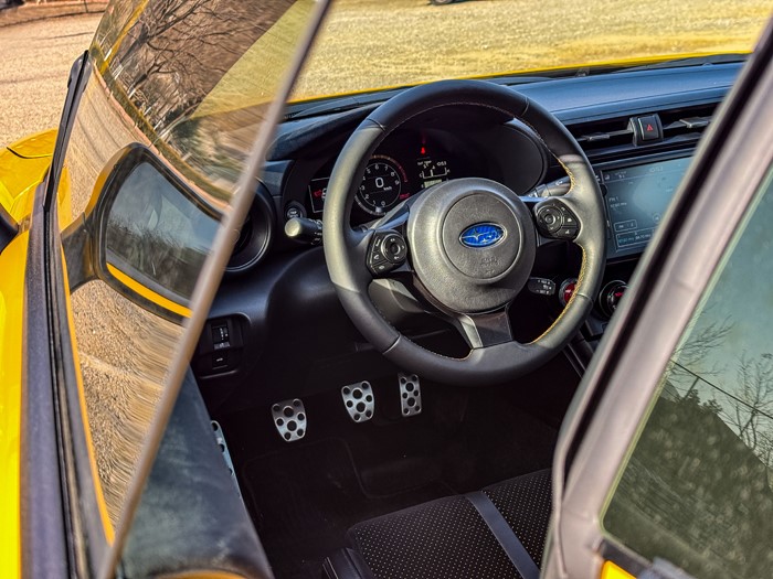 眼前這臺(tái)前置后驅(qū)的小跑車,這種亮眼的黃色涂裝確實(shí)在時(shí)下的街頭很難見(jiàn)到了,看慣了斯巴魯拉力藍(lán)色再去看這個(gè)競(jìng)速黃,也是給人眼前一亮的感覺(jué)。斯巴魯BRZ是一臺(tái)讓人的內(nèi)心還可以感動(dòng)起來(lái)、激動(dòng)起來(lái)的車型。斯巴魯官方2026年在國(guó)內(nèi)推出手動(dòng)和自動(dòng)款兩款車型,我們今天試駕的車型為2026款鋒芒限量版 2.4L STI Sport 手動(dòng)版。另外,手動(dòng)版和自動(dòng)版的官方指導(dǎo)價(jià)為30.18萬(wàn)-31.18元。