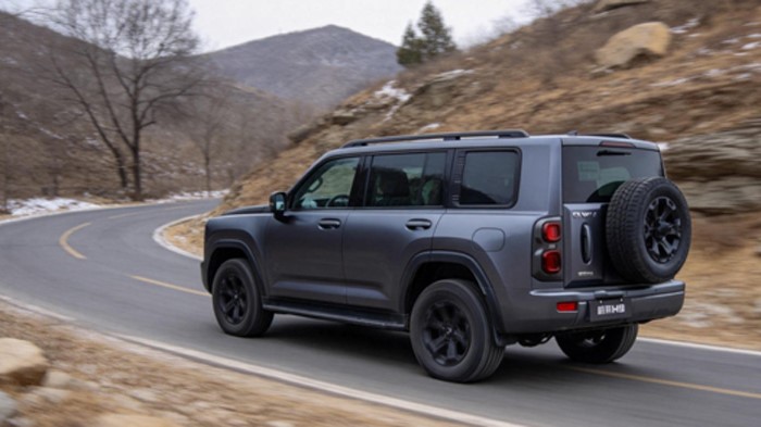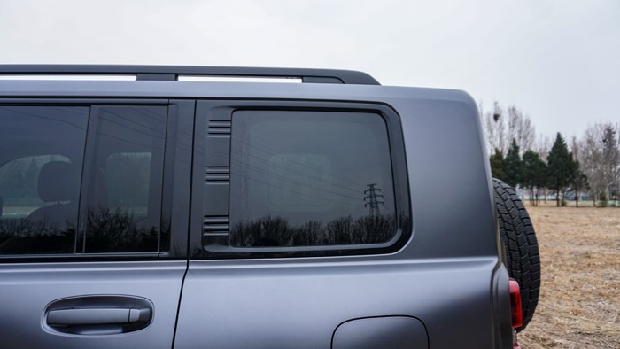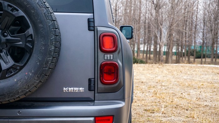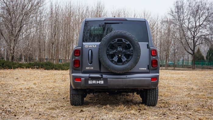 車尾是絕對的方盒子造型,時下非常流行的設(shè)計,方盒子的設(shè)計也做到了內(nèi)部空間的最大化利用率。后掛備胎是很提氣的設(shè)計,畢竟它是一臺硬派越野車,這也是很多越野老炮喜歡的配置。