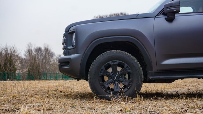 輪轂采用磨砂黑色涂裝,與車身風(fēng)格相配。輪胎采用固鉑AT3 4s的型號,規(guī)格為265/65 R18,該輪胎性能很是優(yōu)異。