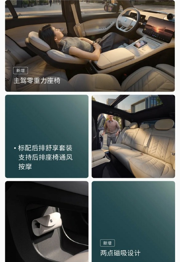 另外主要在配置進(jìn)行升級(jí),包括新增主駕零重力座椅、兩點(diǎn)磁吸設(shè)計(jì)、標(biāo)配后排舒享套裝、輔助駕駛燈燈。新車?yán)^續(xù)搭載蔚來神璣NX9031芯片,提供城區(qū)、高速和停車場(chǎng)領(lǐng)航輔助。