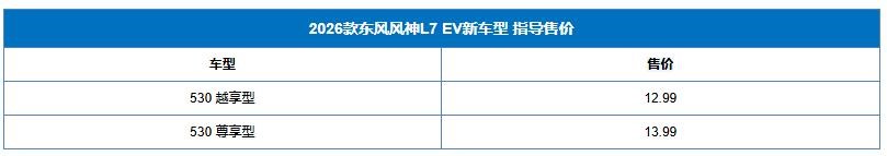 2026款東風(fēng)風(fēng)神L7 EV新增兩款車型上市:12.99萬起,續(xù)航530km